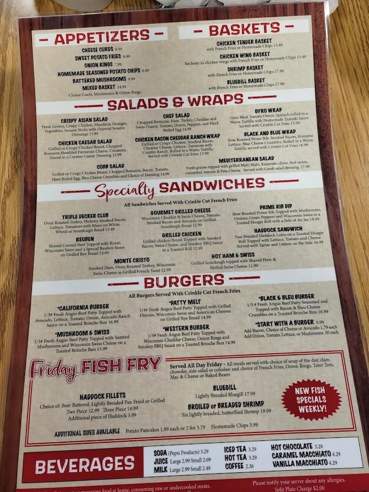 For lunch, try the reuben sandwich or any of the specialty burgers. The diner features seasonal fish dishes that highlight local favorites. The Friday fish fry, with options like bluegill and haddock, consistently draws a crowd.